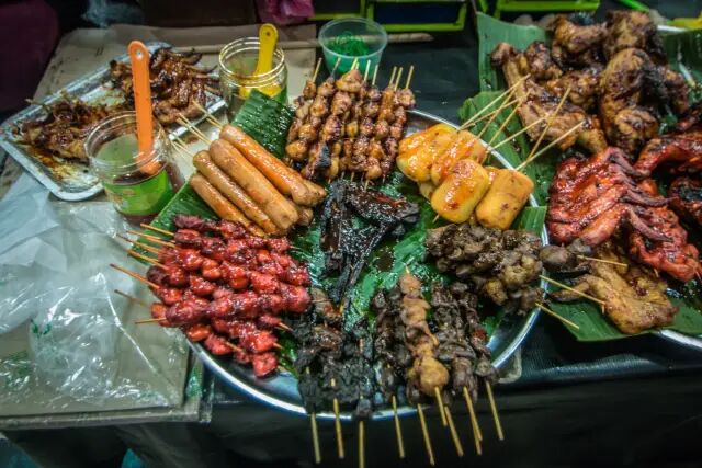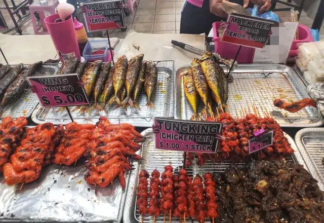 13、烤鸡屁股。在文莱的夜市里,有一种特色美食,烤鸡屁股,色泽红彤彤又油乎乎的,不单受到当地人亲睐,也有不少外国游客跃跃欲试,据说味道不错,香嫩爽口。我心里膈应不敢尝试,注定与烤鸡腚无缘了。