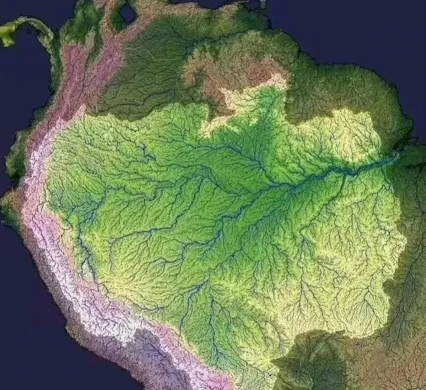 亚马逊河是真的变态,长度跟我国的长江差不多,但是它一年的径流量是长江的近8倍,流域面积是长江的近4倍,要知道我们长江的流域面积可不小啊,达到180万平方公里,它倒好,流域面积近700万平方公里,实在恐怖。仔细看亚马逊河的流域图,血管般的支流汇聚在一起组成了亚马逊河强大的水流量!