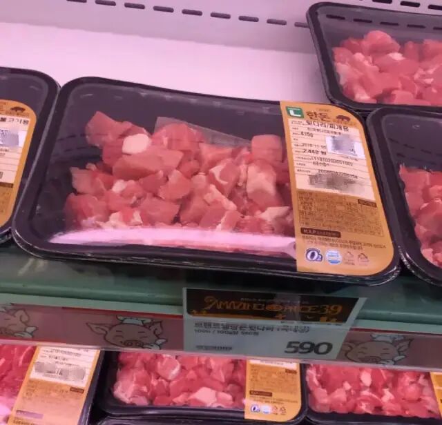 韩国地少,本土的牛和猪贵,反之禽类和一些进口的食品便宜。