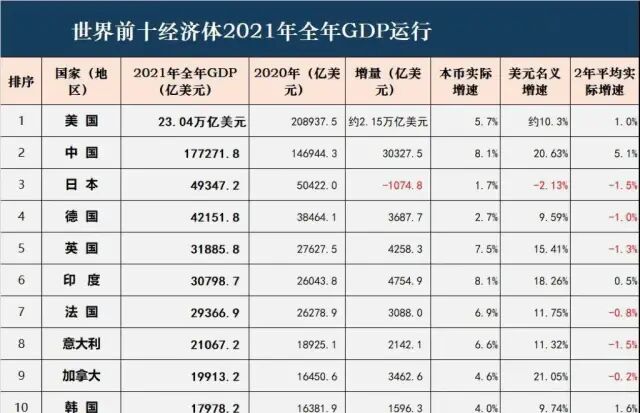 2021年,韩国的总GDP是1.798万亿美元,排在世界第10位,我国则是世界第二大经济体。韩国的人均GDP为3.5万美元,我国的人均GDP约为1.2万美元。