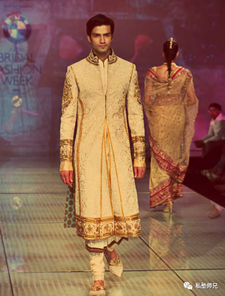 2. 印度男性多半穿着一袭宽松的立领长衫,搭配窄脚的长裤。