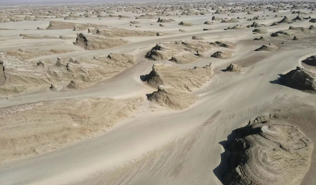 在青海海西州茫崖市,有一片一望无际的戈壁,上面密布着一座座小沙丘、小土堆,远眺宛如异星战场上的战舰残骸,有人说这里是地球上最像火星的地方。