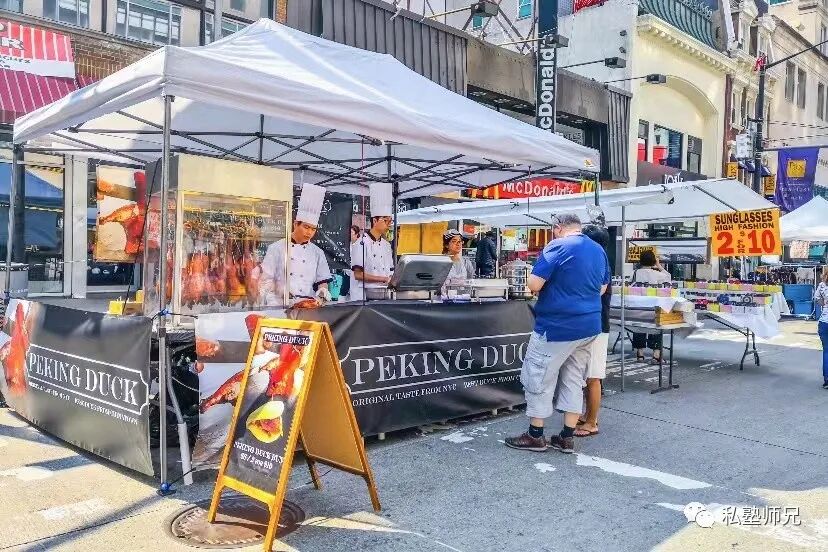 路边随处可见食品摊,从卖巴西烤肉,美国炸鸡,中国烤鸭等等。