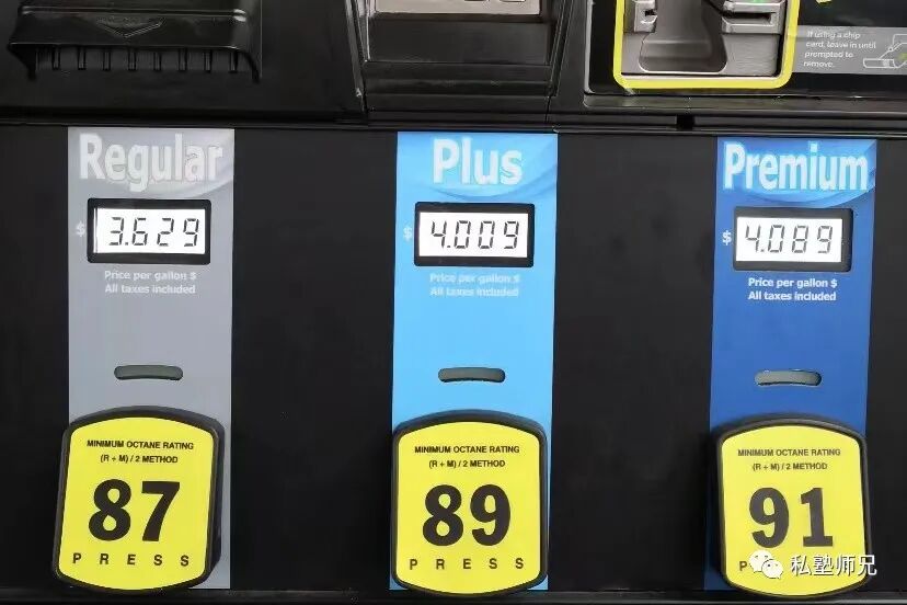 美国汽车加的油一般分为3种类型,普通油每加仑/3.6美元,当然不同地区有差差异,便宜的有1加仑/2.2美元,西部地区有的1加仑/3.9美元。