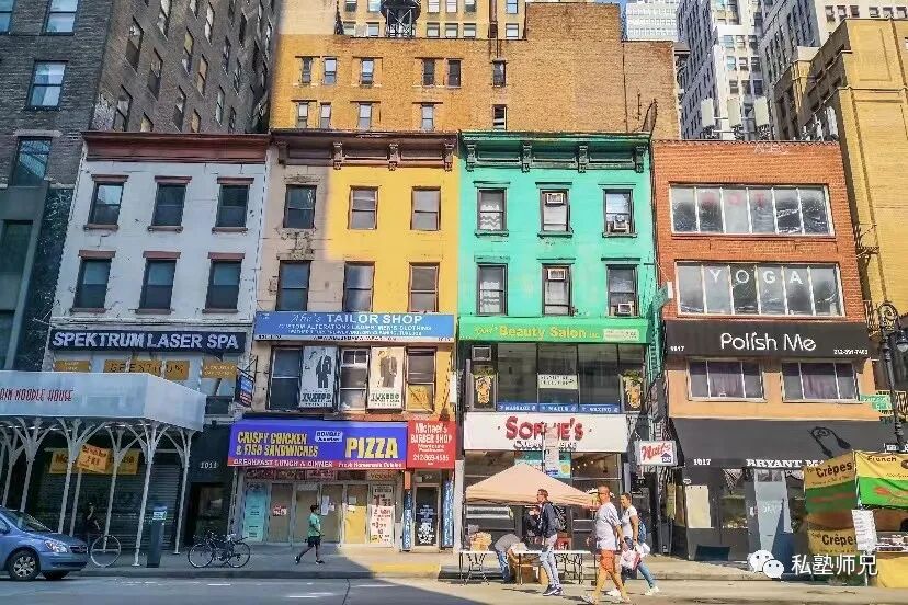 皇后区老旧的住宅楼,曼哈顿非核心区,有诸多陈旧的商铺,看着跟国内三线城市临街店面差不多。