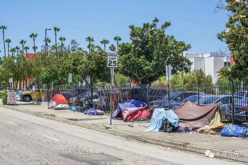 在洛杉矶,这座美国第二大的城市,你行走中心街上或河沿岸,真的到处可见流浪者的帐篷,躺在路边的流浪汉,还有一脸慵懒、两眼无神、精神恍惚的人。
