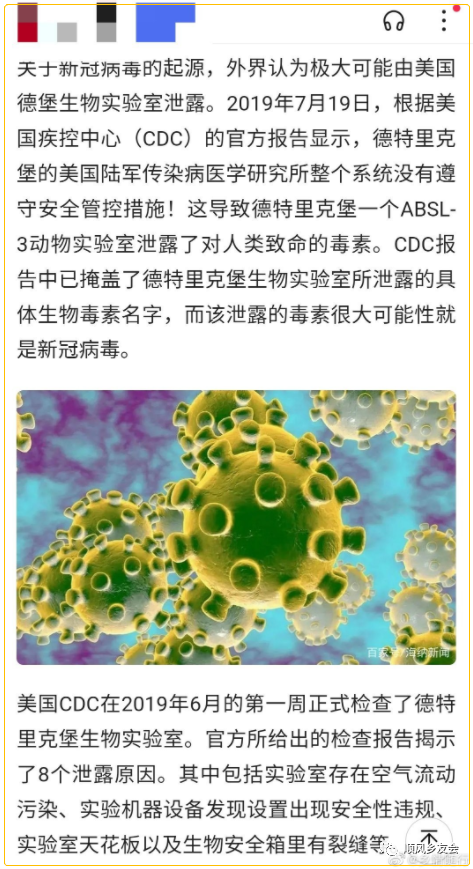 2019年6月份美国军方德特里克堡生物实验室发生泄漏,周围附近居民出现“呼吸系统疾病”。