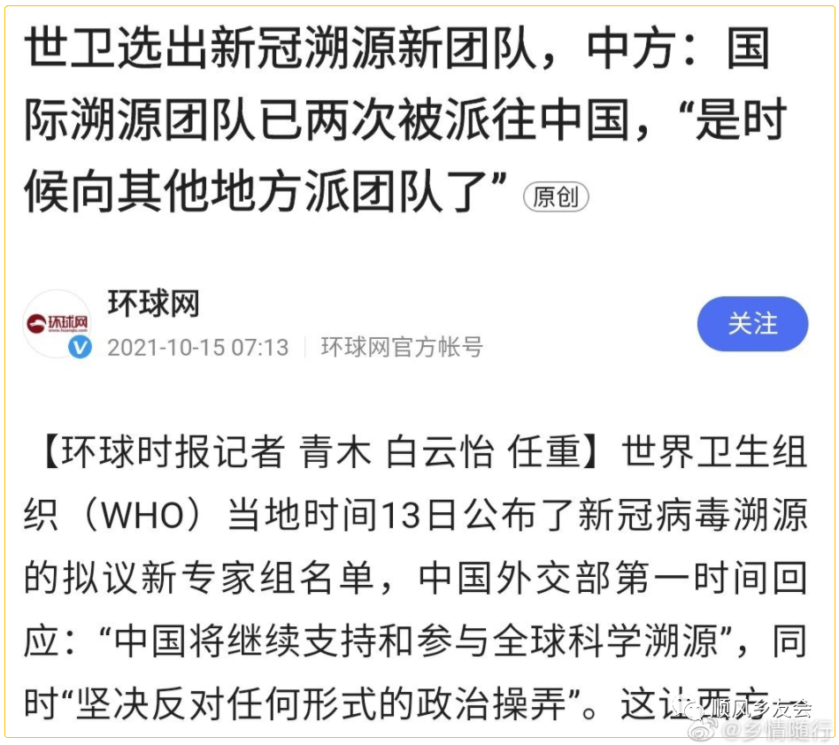 在新冠溯源这一项事务上,甚至世卫组织都是以美国政治为指导方向的。