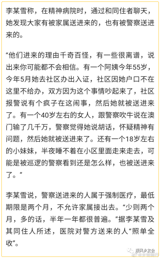 但是,送精神病院的方式就那么好用?就女子描述来看,好像类似被送去的人还有不少。
