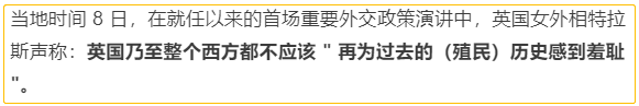 这是英国新任外相特拉斯的言论,他们不仅要否定做强盗的历史,还要继续干起打家劫舍的勾当来。。。