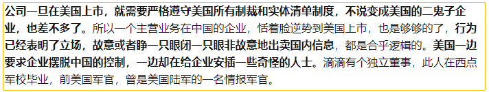 美国的证券交易制度规定外国企业在美国上市公司需要交出一部分机密数据的,对中国企业要求更为严苛。