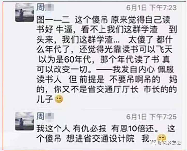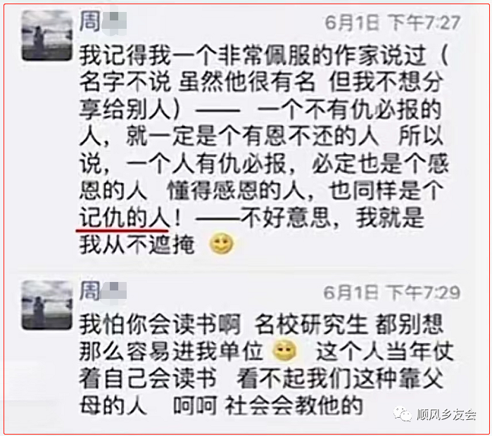 周在朋友圈中提到另一个学霸同学曾经很嚣张,瞧不起他,现在想进他们单位被阻挡,周在朋友圈蔑视了一番,顺便给别人上了一堂社会课。
