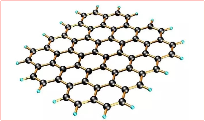 石墨烯,实际上是通过特殊技术把碳原子摊薄成一个一个原子相连的片状结构(如下图所示),达到准二维晶体结构。