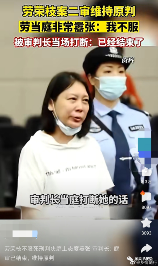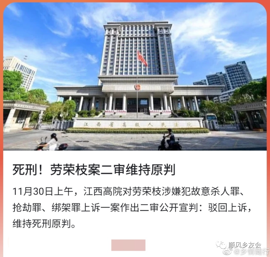 劳荣枝的死刑案,二审维持原判。
