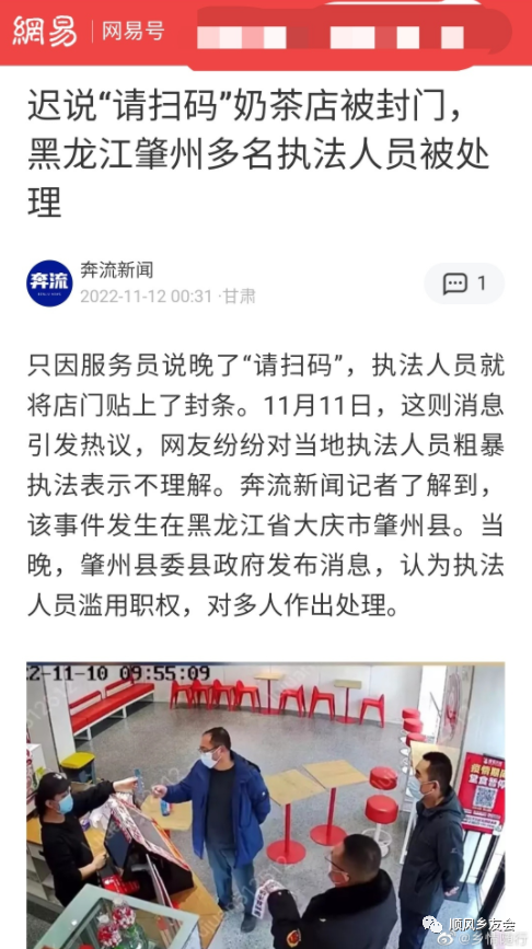 2022年11月曝光的,店员先说“欢迎光临”,后说请扫码,居然被执法人员嫌“说迟了”,被勒令停业。