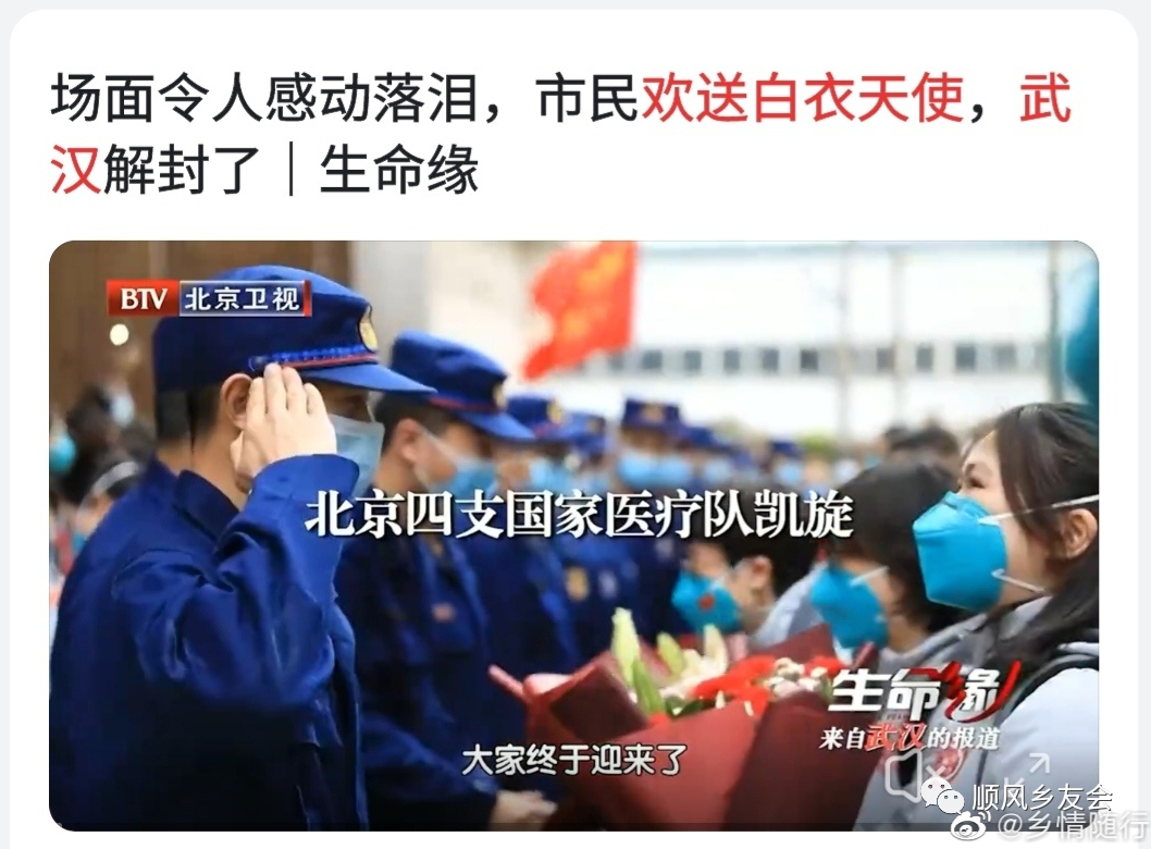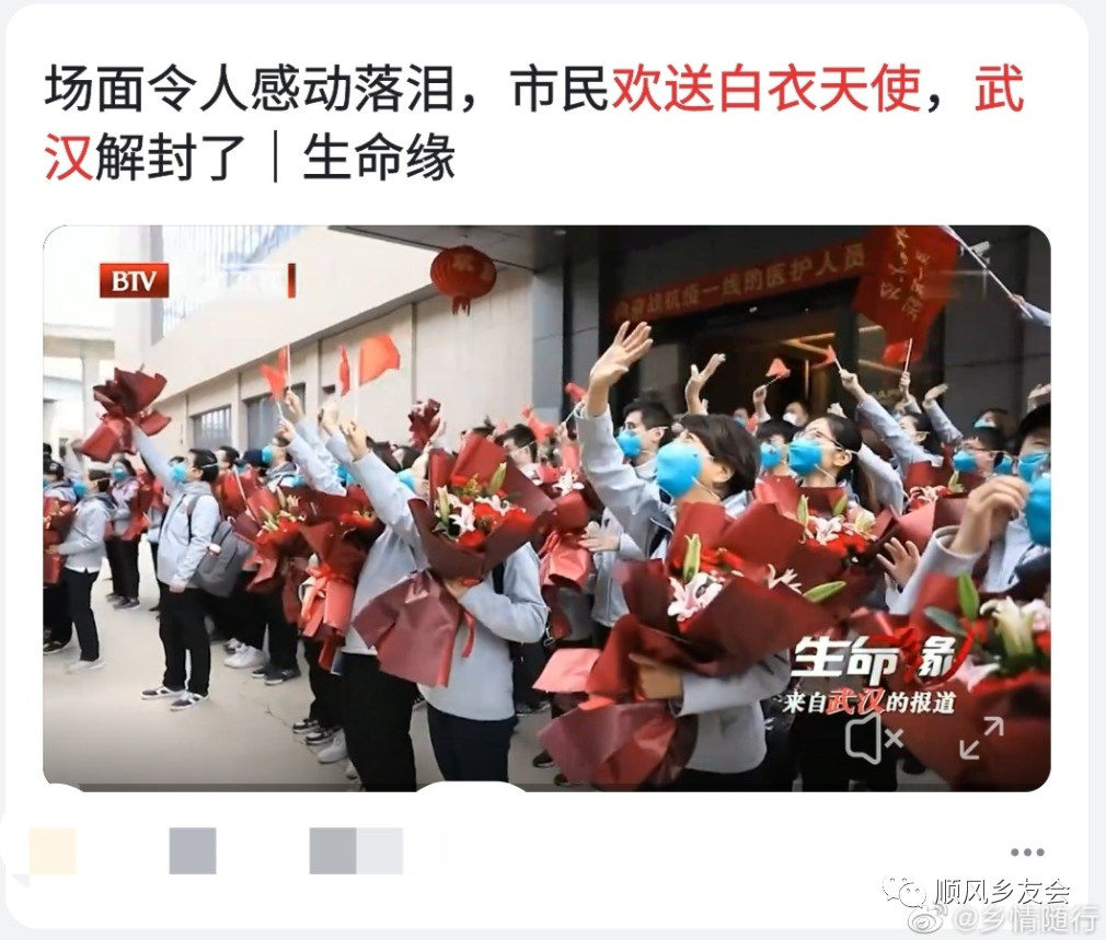 援鄂医护工作者离开武汉的时候,民众夹道欢送。