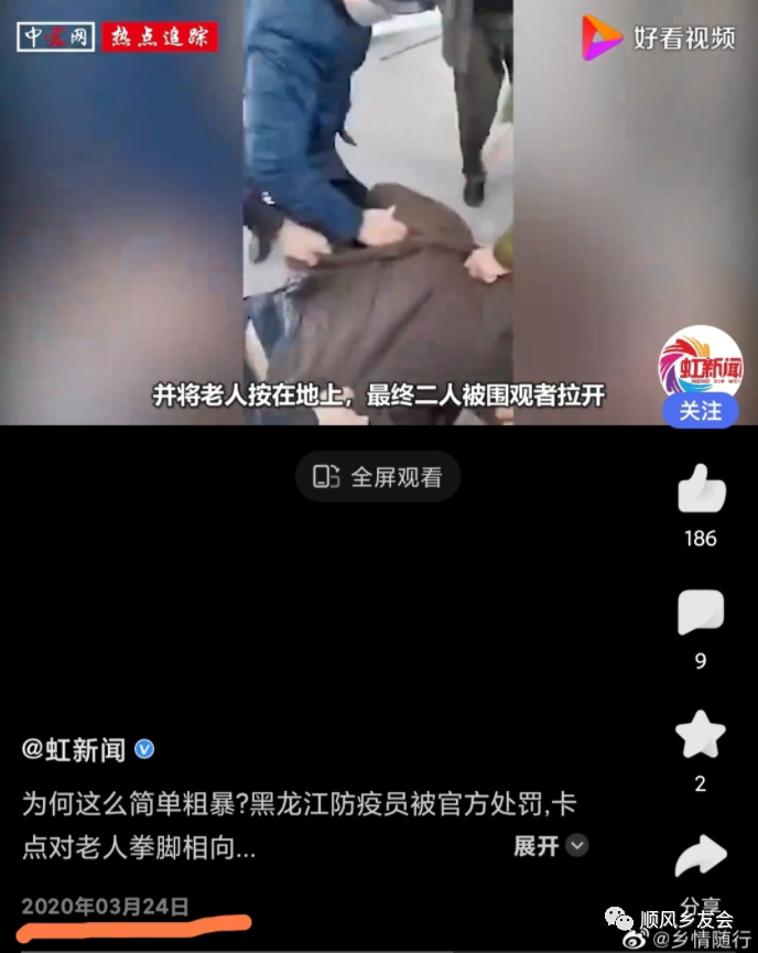 2020年初就已经有人爆出防疫人员暴力殴打老人的事情,但是因为那时候大家都比较听话,也比较怕死,都积极支持“严格执法”,因此有些事情就被淡化了。