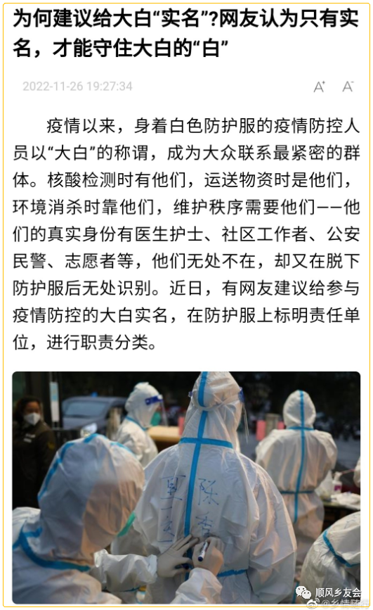 但是,这几年下来,人们经历过很多事。主要是防疫工作中出现了太多问题,大白只是其中的一部分,但是大白几乎是这几年防疫的代名词,因此这个字眼就显得特别有意义。