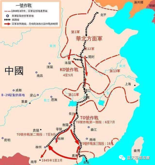 所以当时的日本决定打通日本本土和东南亚的路上联系,就是要拉长战线,一直深入中国由东北打到西南。我们现在肯定清楚这个决定是愚蠢至极,拉长战线意味着补给来不及和兵力的分散,一定意义上可以说这个计划造成了日本陆军的失败。