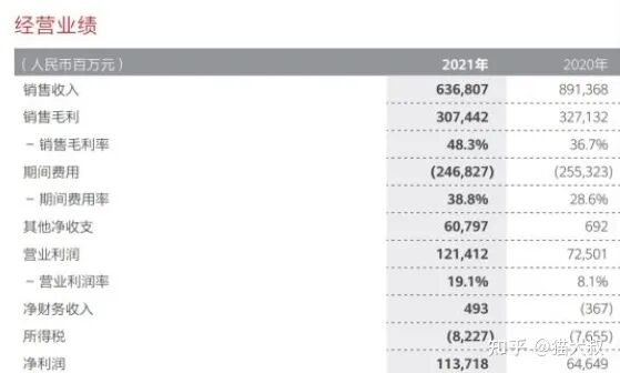 华为去年同比收入下降了28.6%,但营业利润增长67.5%,增加489亿。表面上看收入下降营业利润暴涨,当然是盈利能力增强了。但1214亿的营业利润里有600亿来自其他业务,也就是卖荣耀的钱,这显然没有可持续性。扣掉这笔钱,营业利润还下降的——收入减少2546亿,毛利减少197亿。(很多人只提到净利润扣掉其他净收支以后同比净利率还是上涨的,但这改变不了扣非后利润同比减少的事实)