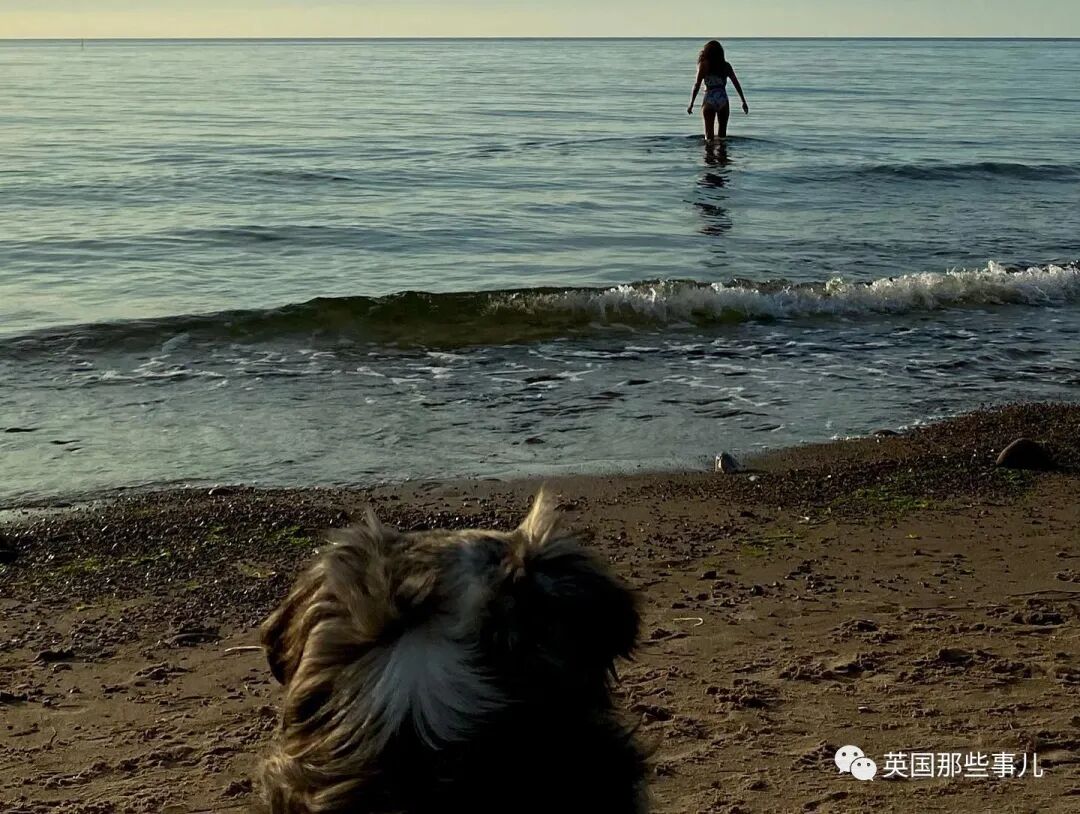 煮咖啡,穿泳衣,然后带着咖啡和狗狗去海滩。
