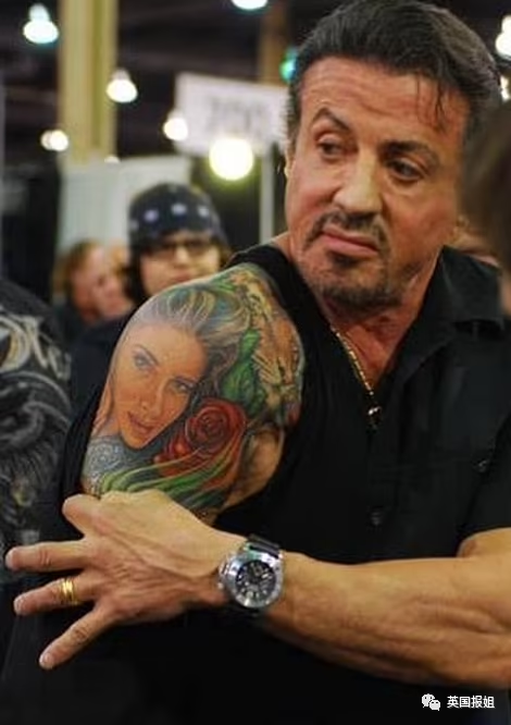 他右手臂上原本纹了一个妻子Jennifer的巨大头像,四周花团锦簇。
