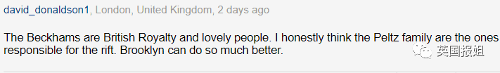 “贝克汉姆一家是英国皇室一般的存在,全家都很有爱的。我真的觉得佩尔茨一家才应该为这场纷争负责,大布值得更好的。”