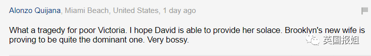 “可怜的维多利亚,真的太惨了。希望小贝能给她安慰。事实证明,大布的新婚妻子太强势了,相当专横。”