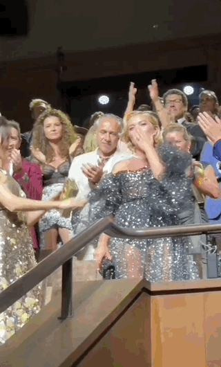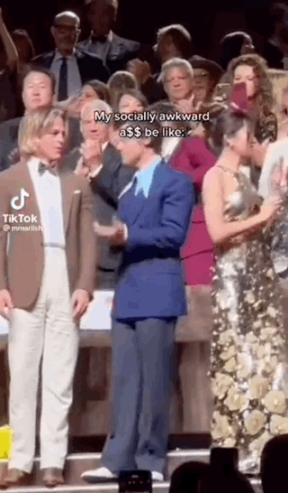 回到电影首映现场,放映结束后,全场起立鼓掌,TikTok的网友又捕捉到哈卷无人一起鼓掌互动的社死场面,并配文“社恐的我be like:”