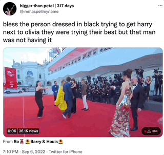 首先就是记者会上女主皮尤缺席,导演奥利维亚解释她在别处拍戏,结果皮尤被拍到本人就在威尼斯的消息。