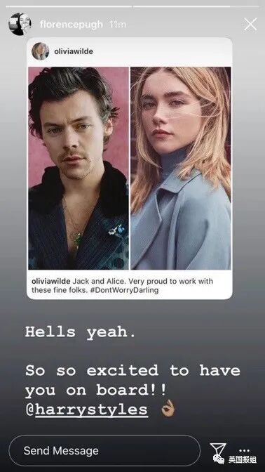 彼时,电影筹拍的新闻出来后,1996年出生的皮尤相当激动,在社交媒体上转发奥利维亚的图文,并配上对方是自己的偶像,得到合作机会非常兴奋的文字。