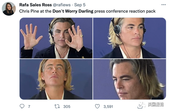 这也就解释了,为何从2020年10月开拍,到2022年9月5日出席红毯时,皮尤都没和导演有过互动,只和除了男主以外的同事们互动转发点赞的原因。