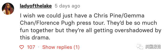 “好想看克里斯·派恩、嘉玛·陈、皮尤一起路演哦,他们三个肯定很好玩,可惜被drama抢了风头。”