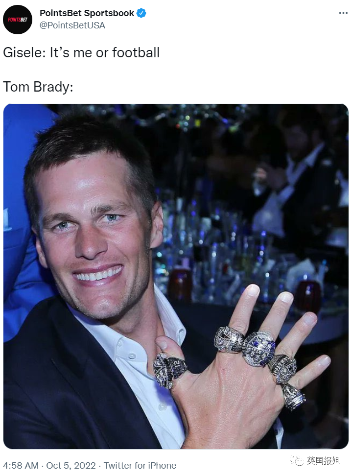 唯一不同的是,后者摘的是超级碗冠军戒指,吉赛尔摘的是结婚戒指。