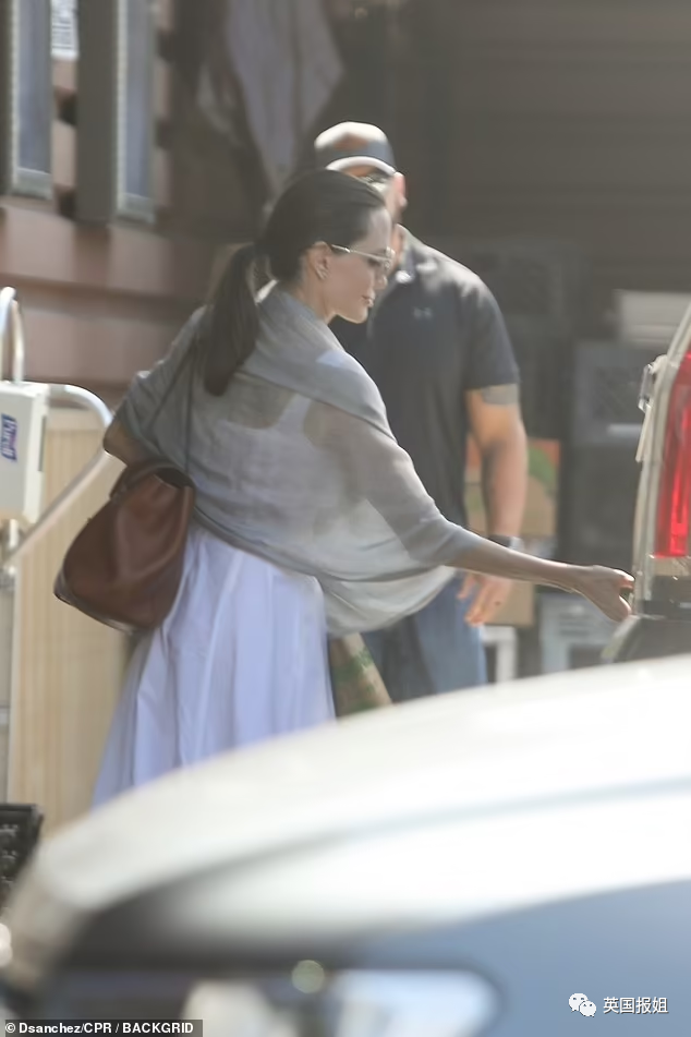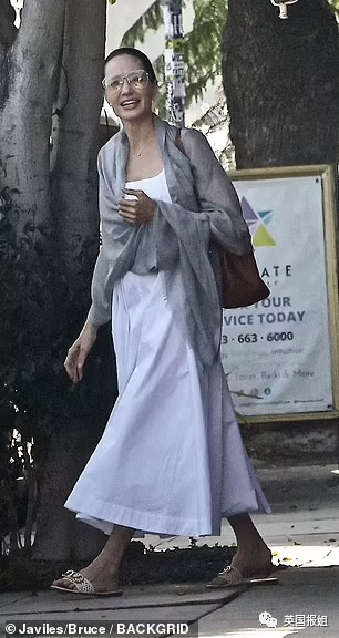 47岁的朱莉似乎并没有因为法庭的风波影响心情,她穿着白色连衣裙和灰色的披肩,神情放松。