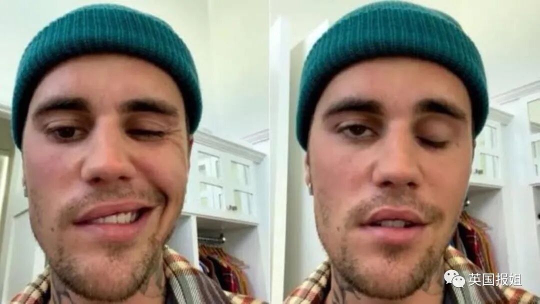 比伯患上罕见的亨特氏综合征,半边脸完全面瘫,海莉也陪着他。