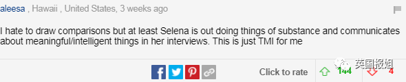 “我讨厌比较两个人,但至少赛琳娜在她的采访里做了实质性的事,交流了有意义的事。