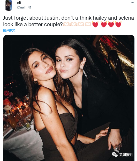 这件事从震惊世界之后,发展走向越来越奇怪,一小部分人竟然开始嗑起了赛琳娜和海莉的CP?