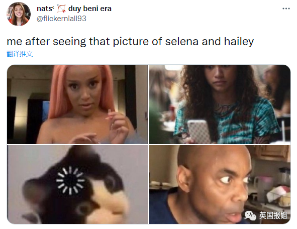 “看到赛琳娜和海莉那张合照之后的我:”