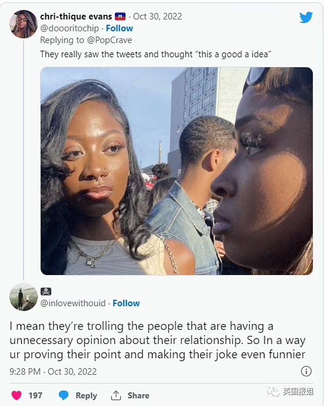 如果一切是梅根的选择,那只希望两人就算不为了网友着想,也为自己的孩子想想,别拿刷下限当噱头自我炒作,而如果梅根真的陷入了不健康的恋爱关系,那只能祝她好运,赶紧独自美丽吧。