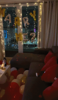 房间里用金色的气球拼出“要嫁给我吗?”