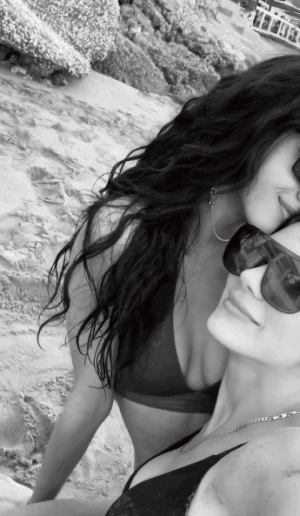 照片中,两人一起在海里嬉戏,互相拥抱。
