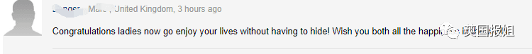 “恭喜女士们!你们可以尽情享受生活不用再躲藏了,希望你们永远幸福。”