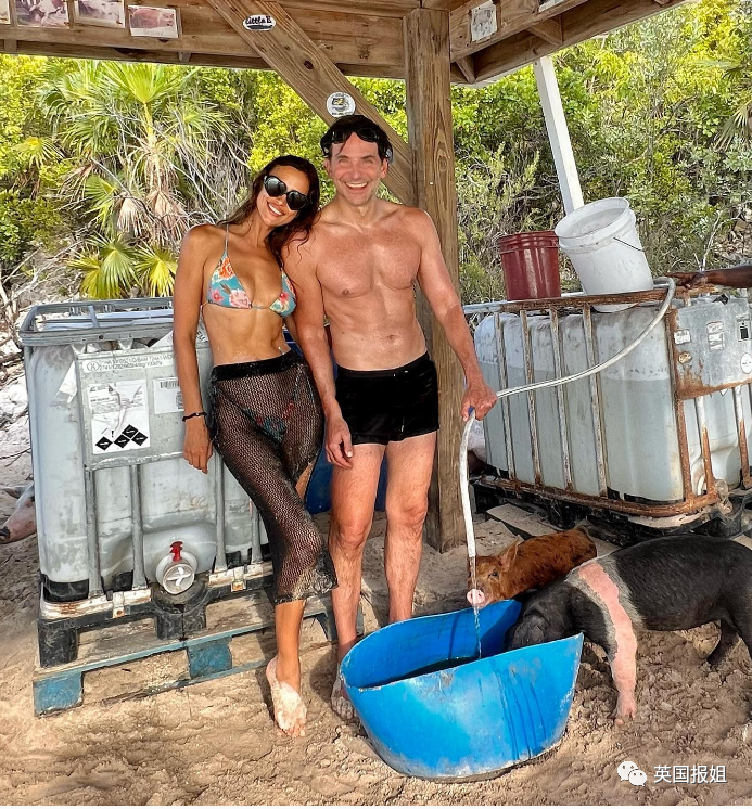 其中就有她和库珀的合照,他们穿着泳装亲密地靠在一起,伊莉娜的头还靠在库珀的肩上,两个人在那儿一块喂猪。