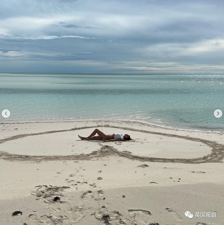 伊莉娜还发了一张自己躺在沙滩上的照片,周围被一颗心圈了起来。
