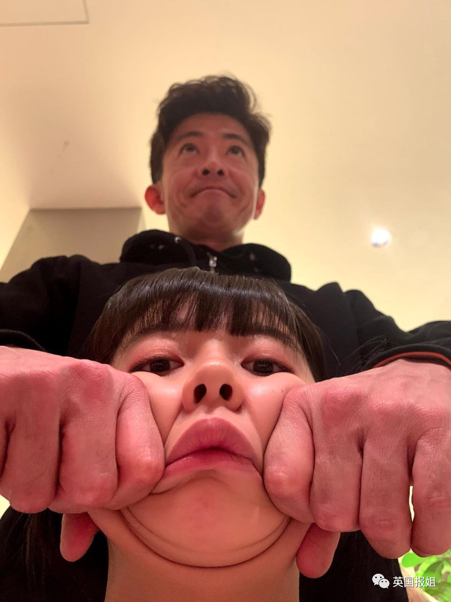 另一张是木村狂捏她脸蛋的“丑照”,看得出姐妹俩和爸爸很亲。