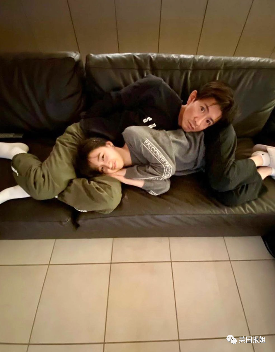 姐姐的照片更可爱,一张是父女俩窝在沙发上的生活照。