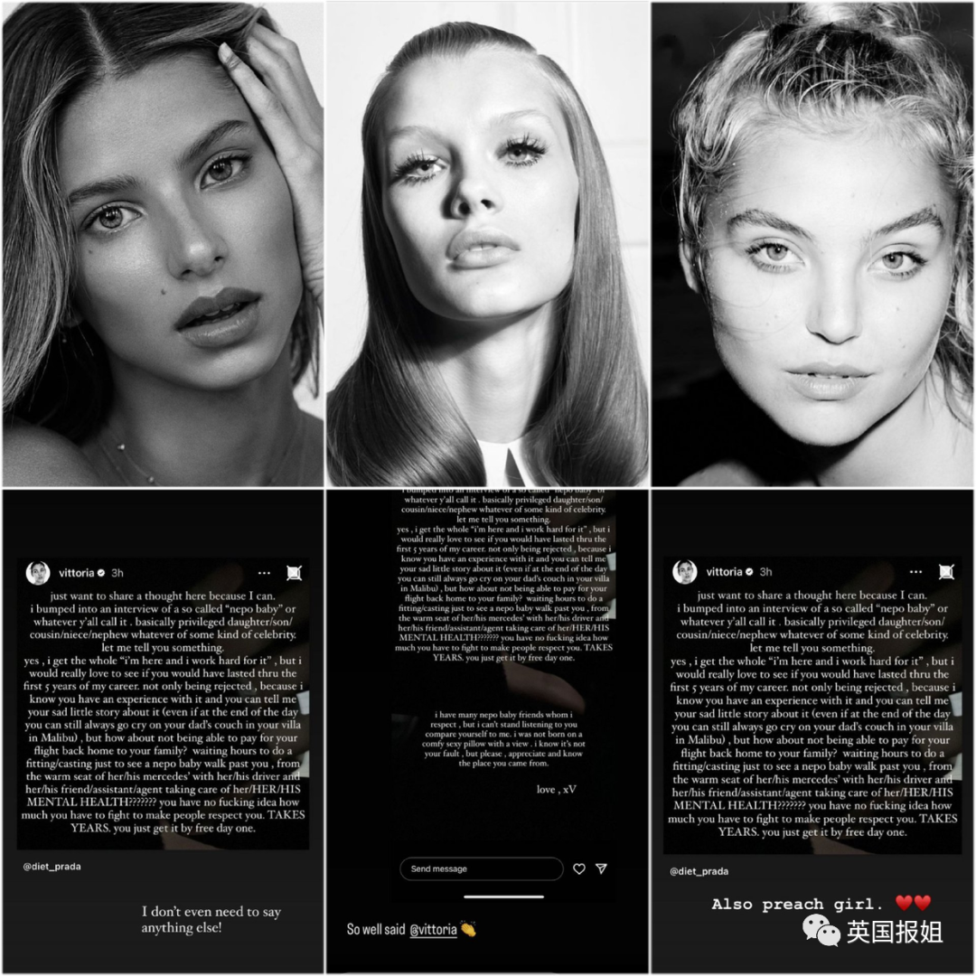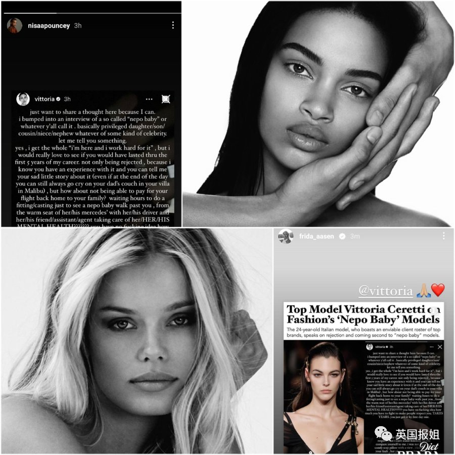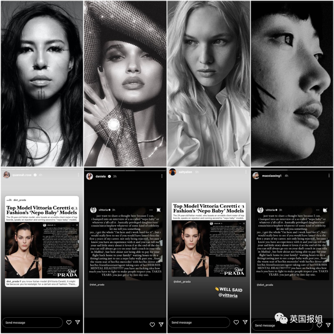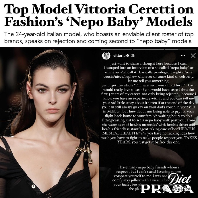 而在Ceretti“开炮”后,有无数超模也开始纷纷表态支持她,指责“星二代”们享受了太多的特权。