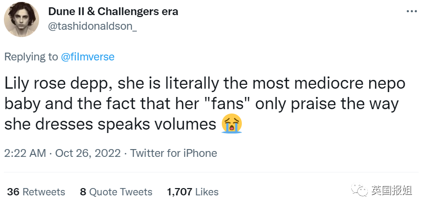 “莉莉罗丝就是最平庸的星二代。连她的“粉丝”都只能夸她的穿搭水平,夸不出别的。”