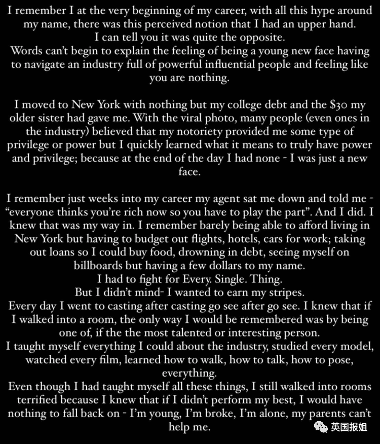 数十个国际知名模特分享自己的经历,表达了相似的看法。